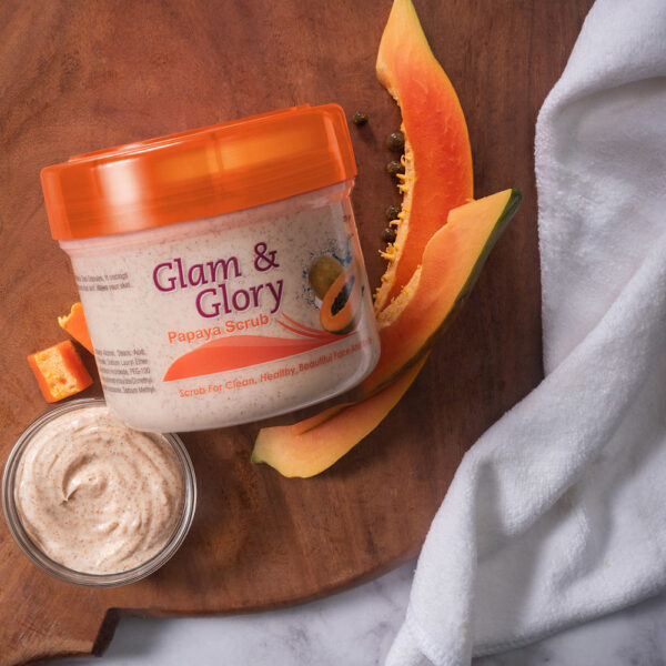 Get your hidden glow back with Glam & Glory Papaya Scrub. Its papaya and walnut shell extracts help in gently exfoliating the skin and unclogs your pores. Makes your skin soft, supple, and glowing with every use.
